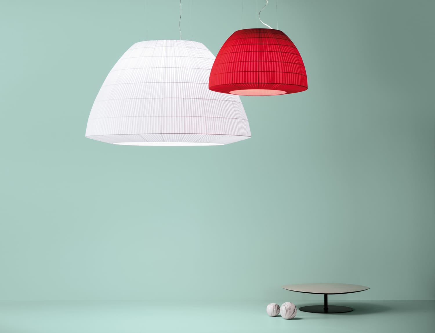 BELL Axo w wersji wiszącej, w oryginalny sposób reinterpretuje kształt kopuły. Pomimo swojej objętości, miękkie linie i lekkość materiału sprawiają, że BELL to lampa, która nie obciąża otoczenia. Dzięki swoim chromatycznym i przestrzennym wariantom, BELL pasuje do różnych stylów i projektów, personalizując każdą przestrzeń. BELL łączy w sobie istotną tożsamość estetyczną, doskonałe parametry oświetlenia i właściwości akustyczne. Tkanina pongé, dzięki swojej fakturze, jest zarówno trudnopalna, jak i akustyczna. Ekwiwalentna powierzchnia pochłaniania dźwięku (EQP) wynosząca 4,63 pozwala lampie zredukować hałas nawet o 59%.