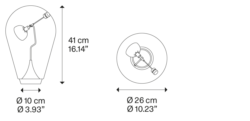 To eteryczna i oryginalna lampa stołowa. Wykonany z dmuchanego szkła zawiera jasny moduł LED, który można skierować do wnętrza dyfuzora, aby tworzyć coraz to inne wiązki światła. Idealny do czytania lub urządzania przestrzeni osobistych i intymnych.