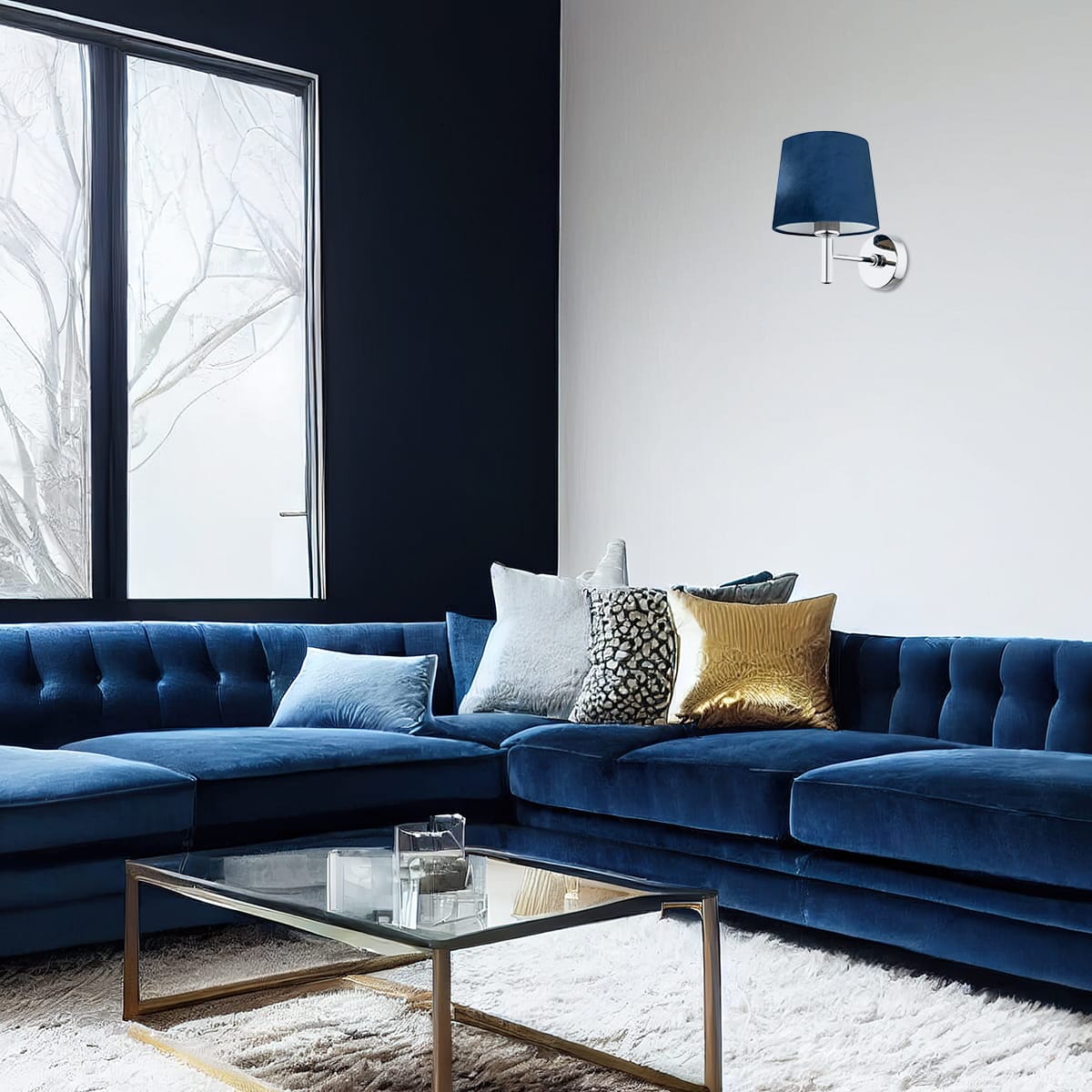 | Materiał | Abażur welur, stal chromowana |