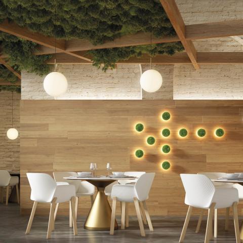 Dyski z mchem chrobotkiem wykonane są w 100% z naturalnego, konserwowanego mchu. Każdy krążek jest wykonywany ręcznie, dlatego poszczególne egzemplarze mogą się nieznacznie różnić. Dekoracje z mchu poprawiają akustykę, pomagają kontrolować wilgotność w pomieszczeniu, redukują hałas, są niepalne, niealergizujące i nie emitują CO2. Nie wymagają pielęgnacji ani wody. Mech może wydzielać drzewny zapach, który znika po 3-4 tygodniach i jest nieszkodliwy dla zdrowia. Do użytku wewnątrz pomieszczeń.