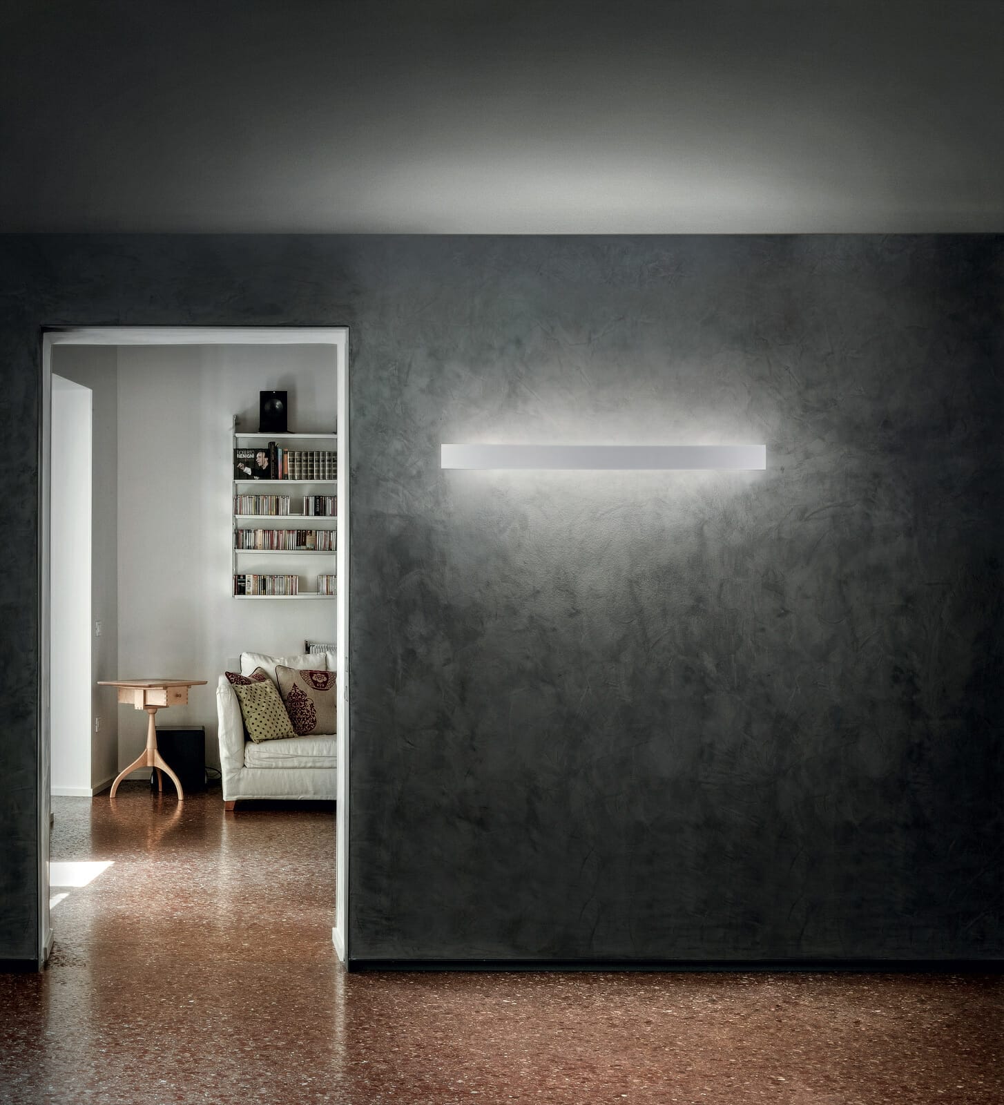 Niemniej istotnym dla architektów jest oryginalny dobór wersji kolorystycznych oprawy kinkietu. Producent firma Linea Light proponuje bowiem poza białą wersją jeszcze dwa nowatorskie rozwiązania: ciemny brąz i beton.
