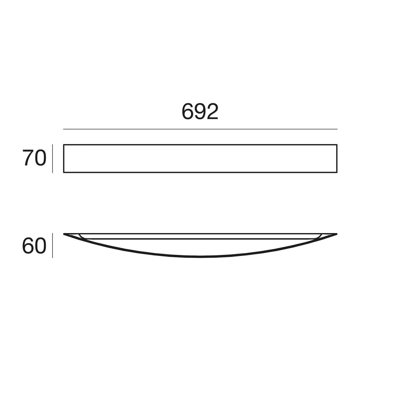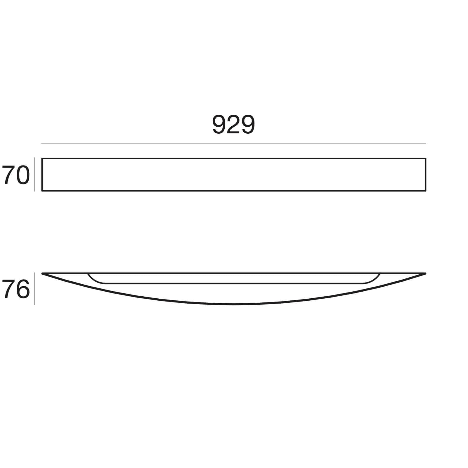Opis czystej architektonicznej formy tego projektu jest prawie w całości ukryty w nazwie kinkietu CURVÈ LED. Kinkiet CURVÈ 90 LED w poziomym przekroju zachowujący kształt nienaprężonego łuku ma prawie 93 cm szerokości prostej podstawy, wysokości zaledwie 7 cm i głębokości 7,6 cm, czyli wysokości ugięcia łuku tworzącej dystans od powierzchni, do której bezpośrednio ów kinkiet jest mocowany. Źródłem światła jest załączony w komplecie 32-cio watowy zintegrowany moduł topLED o białej barwie światła 3000 kalwinów i mocy 2590 lumenów.