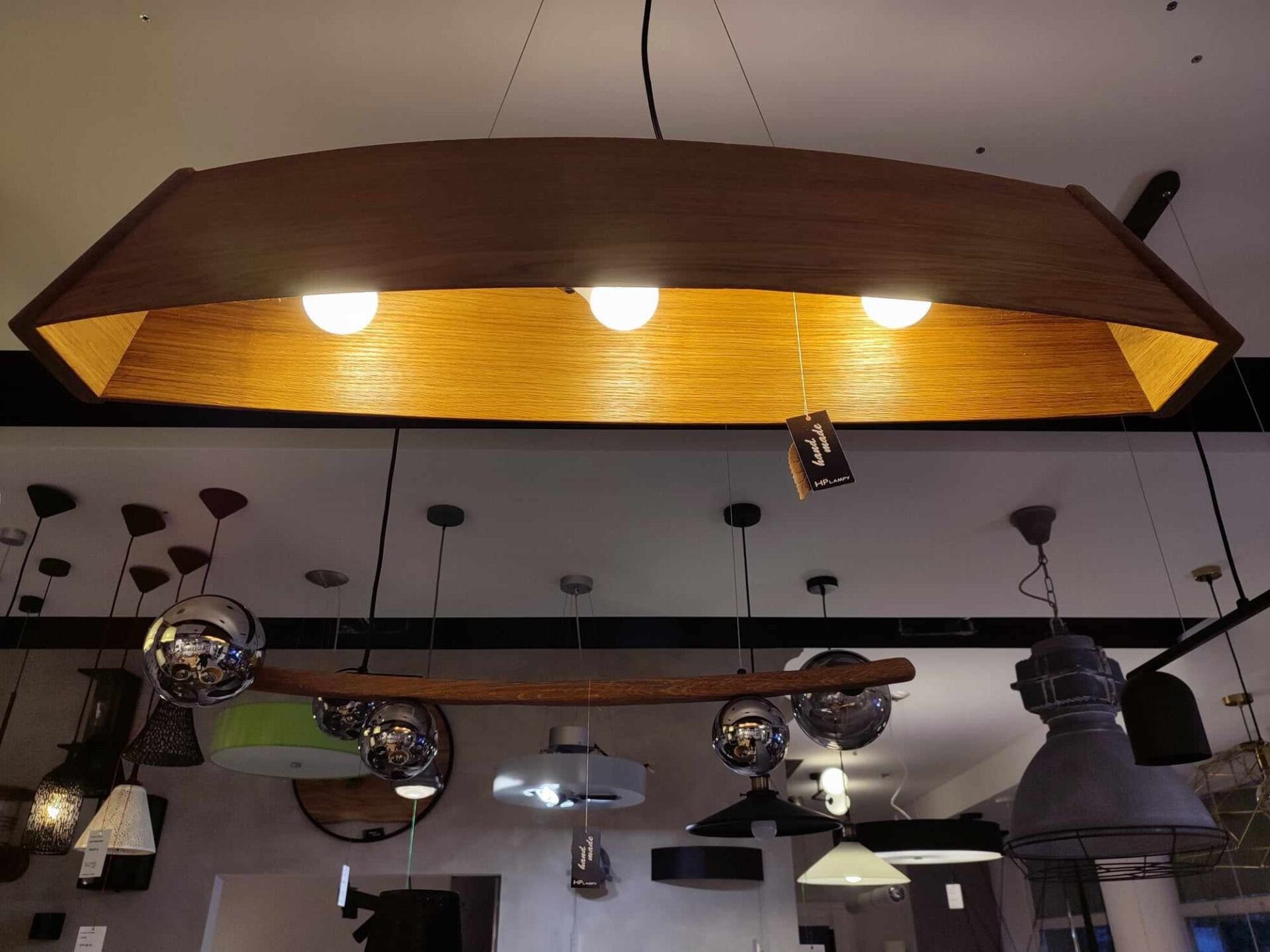 Drewniana lampa wisząca WOOD BOAT w domu