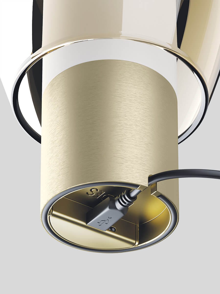 EASY PEASY zaskakuje bogactwem detali, łącząc zmysły i funkcje. Wyczuwalna w dotyku różnorodność powierzchni, w których błyszczące i przezroczyste- metal i szkło współistnieją w zniewalającym kontraście, jest podkreślona przez wyrafinowane i współczesne kombinacje kolorów, podczas gdy głowica jest kluczowym elementem, w którym kolory, wrodzone gesty i kontrola funkcji technologicznych przenikają się.  Gniazdo micro-USB u podstawy korpusu służy do ładowania baterii.