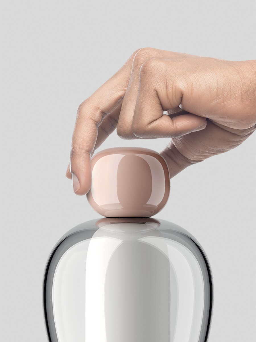 Wykonany z dmuchanego szkła, EASY PEASY pozwala na indywidualną personalizację przestrzeni życiowej. Jego mobilność, różne kształty i kolory oraz funkcja źródła światła od ciemnego do ciepłego pozwalają użytkownikom łączyć się, grać i wchodzić w interakcje dzięki różnym opcjom konfiguracji.