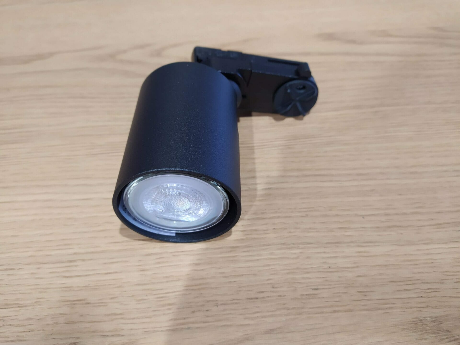 Spot EXO TRACK jest lampą o niewielkich rozmiarach. Tubus o długości 14 cm ma średnicę 6 cm. Oprawa mieści wydajną żarówkę z trzonkiem GU10 o mocy 35W. Żarówki nie ma w zestawie, ale LED-owy zamiennik tej żarówki o mocy 5W można nabyć w naszym sklepie. Podstawa szerokość 8,6 cm, na której wspiera się spot, jest jednocześnie łącznikiem z szynoprzewodem. Oprawa jest wykonana z aluminium malowanego proszkowo na kolor biały lub czarny.