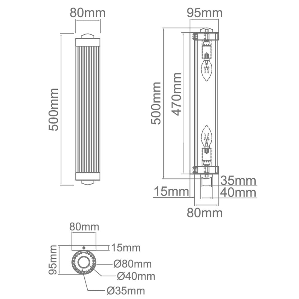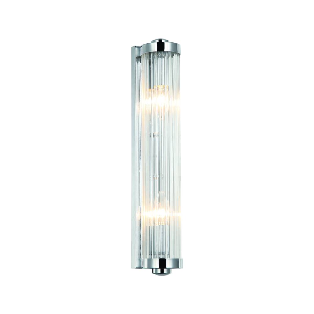 Oprawa ścienna FIATTO to subtelna lampa. Mimo 50 cm wysokości ma zaledwie 8 cm szerokości i dyskretne, chromowane lub w kolorze starego złota, metalowe miseczki podtrzymujące klosz z kryształowego szkła z charakterystycznym, stylowym pionowym reliefem. Miseczki na stałe przytwierdzone są do metalowej listwy, schowanej za kloszem, podtrzymującej całość i będącej miejscem ukrycia przyłącza. Producent firma Orlicki Design zaprojektował w kinkiecie FIATTO dwa źródła światła. To oprawy z gwintem E14 do świecowych żarówek o mocy max 12W. Żarówek nie ma w komplecie, ale w naszym sklepie można nabyć doskonałe LED-owe zamienniki.