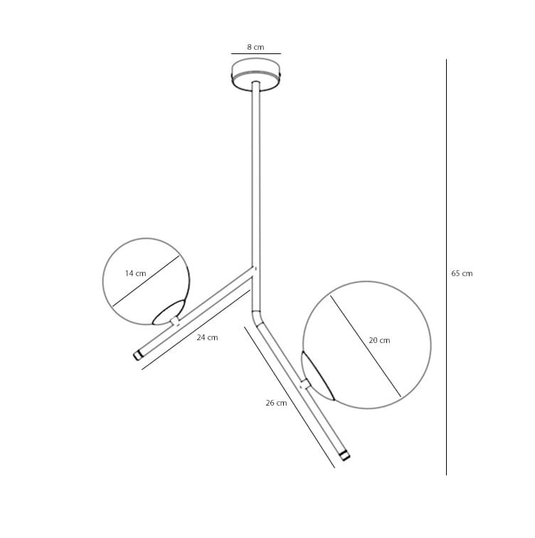 | Wymiary | wys.70cm, szer.50cm, gł. 20cm, śr. kloszy 14 i 20cm |