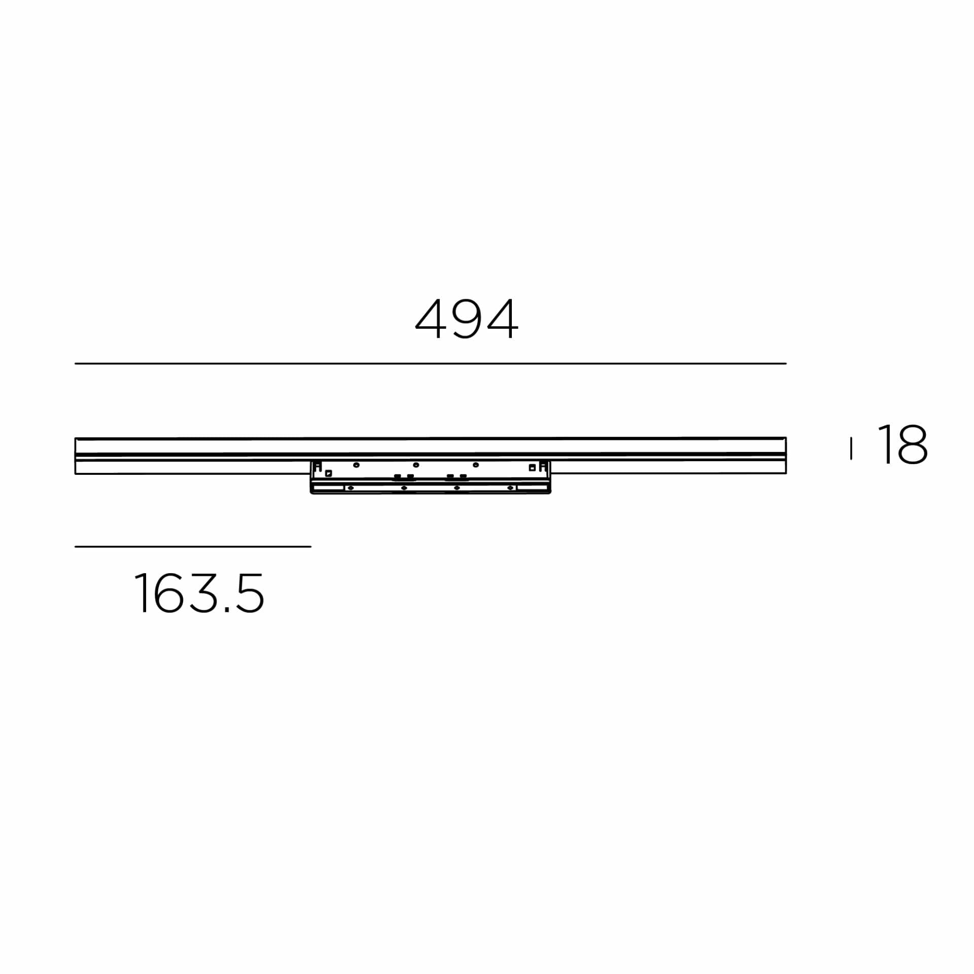 Liniowe i jednorodne oświetlenie zintegrowane w szynie niskonapięciowej, dostępne w dwóch liniowych sekcjach o różnych wymiarach.
