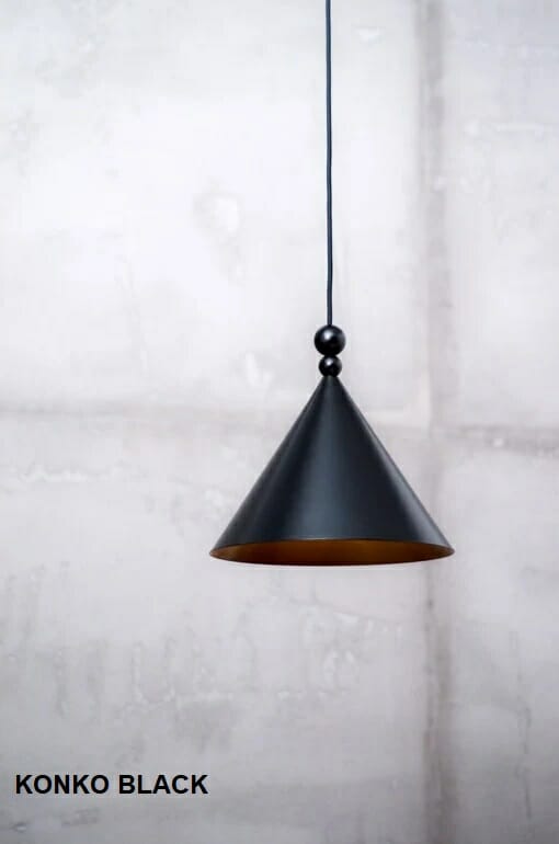Lampę KONKO zamówić można w czterech rozmiarach klosza: 23,30, 45 i 60 cm średnicy. Wytrzymały, metalowy klosz daje gwarancję trwałości na wiele lat. Specjalnie dobrana farba proszkowa – super mat, nie zostawia śladów palców. W ofercie znajdą państwo lampy aż w 29 kolorach. Klasyczne minimalistyczne, matową biel i czerń, inne z palety Pantone, z efektem anodowania ( lekkiego połysku) oraz błyszczące. Wykorzystanie kabla z tekstylnym oplotem bez pamięci materiału jest dopełnieniem komfortu estetyki. Całość wraz z siostrzaną, choć zdecydowanie mniejszą, stożkową podsufitką może mieć maksymalnie 120 cm wysokości. W lampie zaproponowano żarówkę z gwintem E27 o mocy 60W, montując wytrzymałą, bakelitową oprawkę. Żarówki nie ma w komplecie, ale w naszym sklepie można nabyć jej LED-owy odpowiednik.