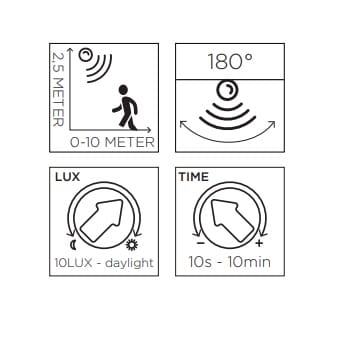 Firma Lutec wyposażyła lampę MAYA w doskonały czujnik ruchu, który zapewni nie tylko świetlny punkt orientacyjny w każdej chwili kiedy pojawimy się w okolicy, ale i podstawowe zadania bezpieczeństwa. Zawieszona na wysokości 2,5 metra gwarantuje reakcje na odległość 10 metrów w promieniu 180º. Dwa regulatory pozwolą ustawić czułość czujnika zmierzchu oraz czas świecenia lampy w reakcji na ruch w granicach od 10 s do 10 min. Warto dodać, że czujniki są tak wkomponowane w odbudowę, że właściwie trudno je zauważyć, a to znacznie podnosi estetykę tego kinkietu. Przy tym lampa jest bardzo solidna i przystosowana do pracy w rozległym zakresie temperatur od -20º do +50º.