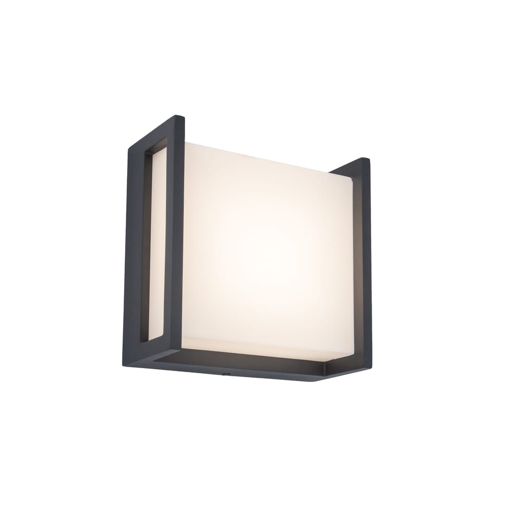 Kinkiet zewnętrzny QUBO MINI chińskiej firmy Lutec to najmniejsza lampa z tej serii. Kwadratowy mleczny klosz z wysokiej jakości tworzywa oprawiony jest w charakterystyczną industrialną ramkę wykonaną z aluminium i malowaną w kolorze antracytu.