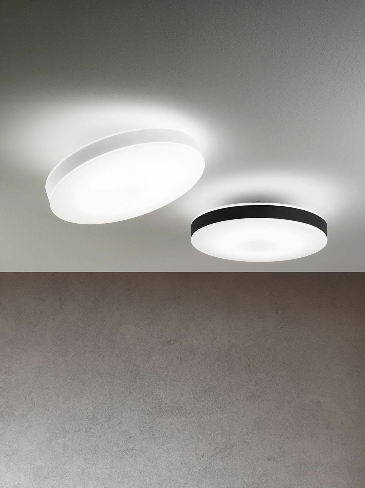 Informację o rzadkiej w tego typu sufitowych plafonach funkcji, jaką jest możliwość nachylenia plafoniery, twórcy ukryli w nazwie lampy. MOVE S to nic innego jak ruchomy przysufitowy plafon ( soffitto ). W tej serii możliwy jest też zakup równie ruchomej lampy wiszącej MOVE P ( pendere – zawiesić).