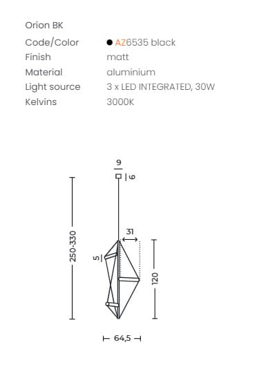 | Wymiary | wys. 250-330cm, szer. 64,5cm, dł. 120cm,śr. klosza 5cm |