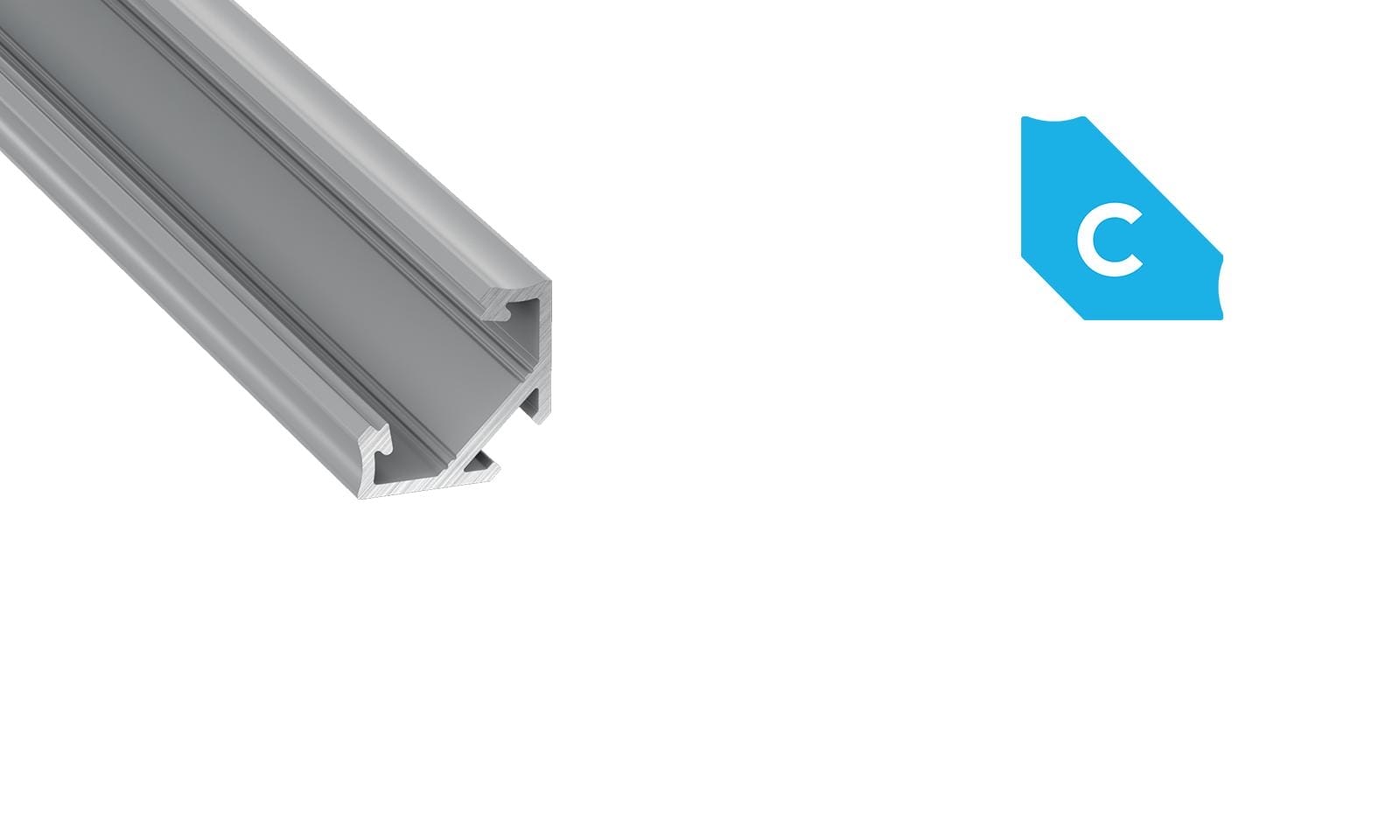 PROFIL C LUMINES narożny o kącie nachylenia taśmy/listwy LED równym 45 stopni. Jeden z najbardziej minimalistycznych i nowoczesnych projektów. Świetnie nadający się do designerskich połączeń dwóch prostopadłych powierzchni oraz wszędzie tam, gdzie konieczne jest skierowanie światła wychodzącego z profilu pod kątem 45 stopni.
