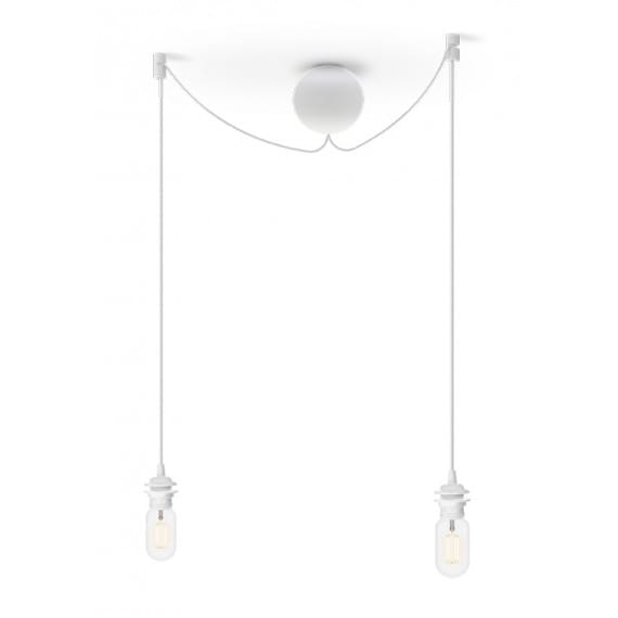 CANNONBALL ma naprawdę bardzo nietypowe rozwiązanie podsufitki. Część maskująca miejsce mocowania i przyłącza elektrycznego jest kulą o średnicy 12 cm. Kula wykonana z silikonu występuje w dwóch kolorach białym i czarnym. Zawiesie wyposażono w przewód zasilający w oplocie tekstylnym o długości 250 cm również dostępny w dwóch powyższych kolorach. Konstruktorzy firmy Umage przewidzieli w zawiesiu oprawę do żarówek z gwintem E27. Rozwiązanie ze standardową oprawą daje duże możliwości doboru żarówki od tradycyjnej przez halogenową i energooszczędną żarówkę LED-ową do dekoracyjnych żarówek na przykład serii Edison.
