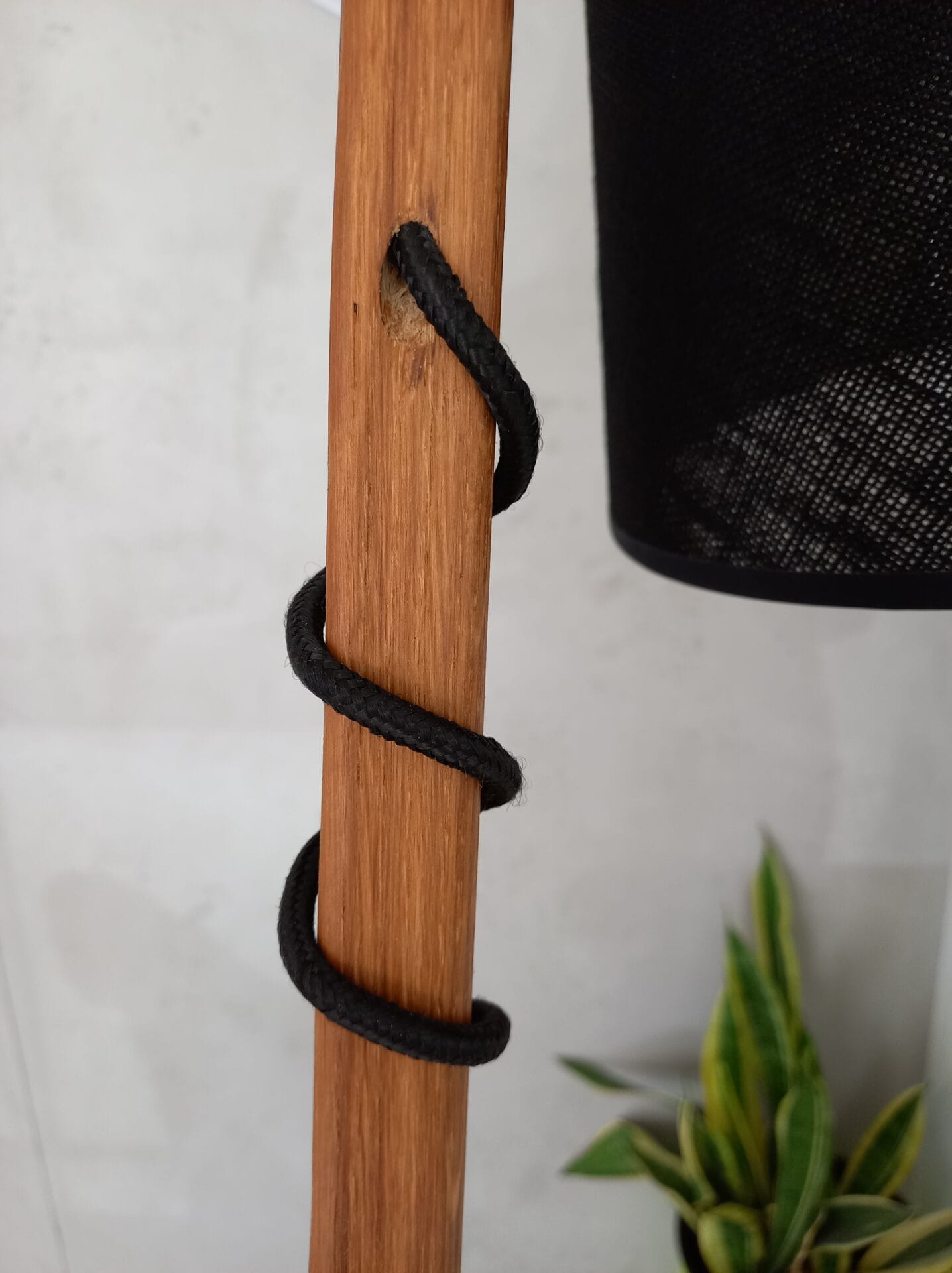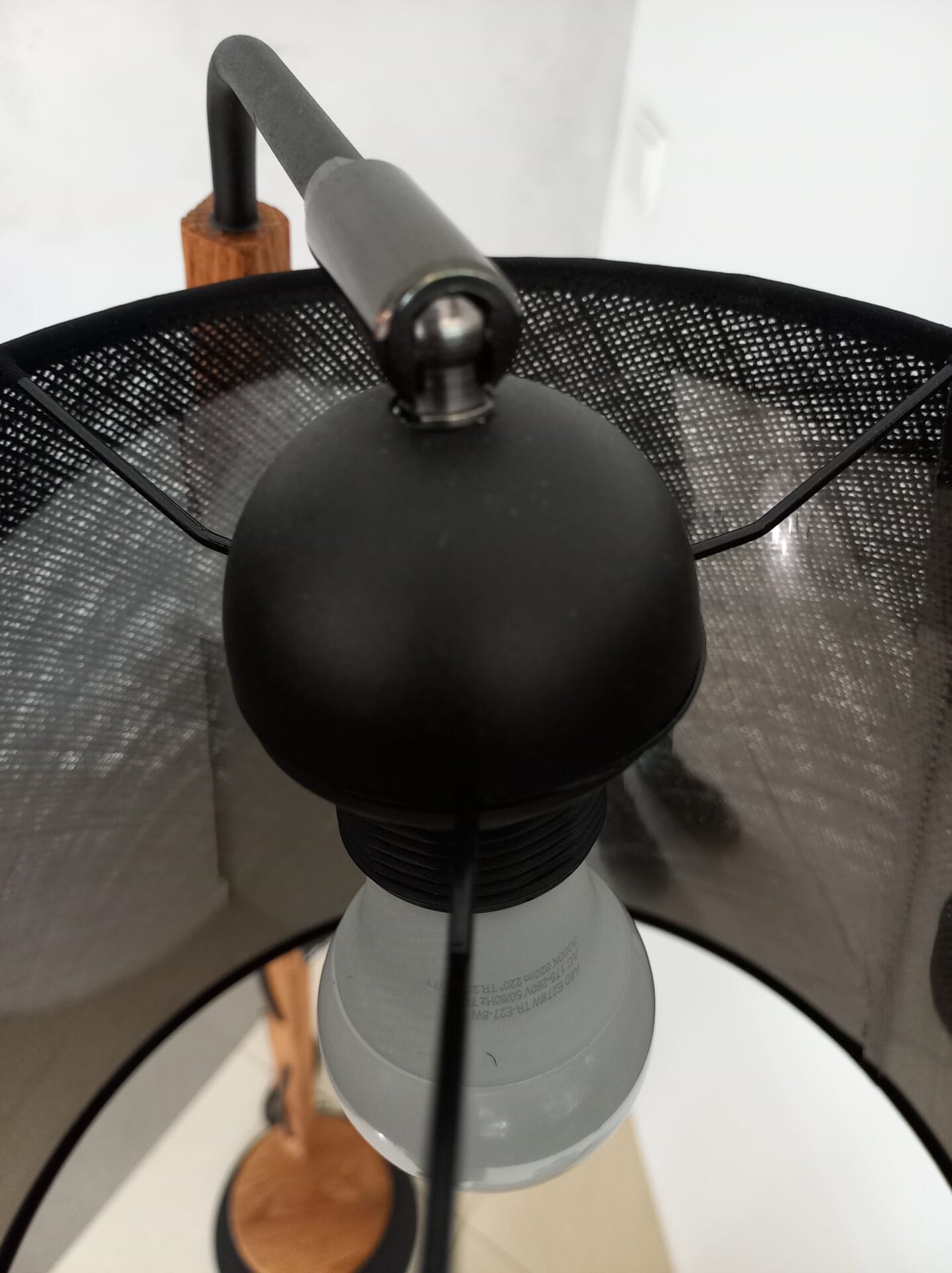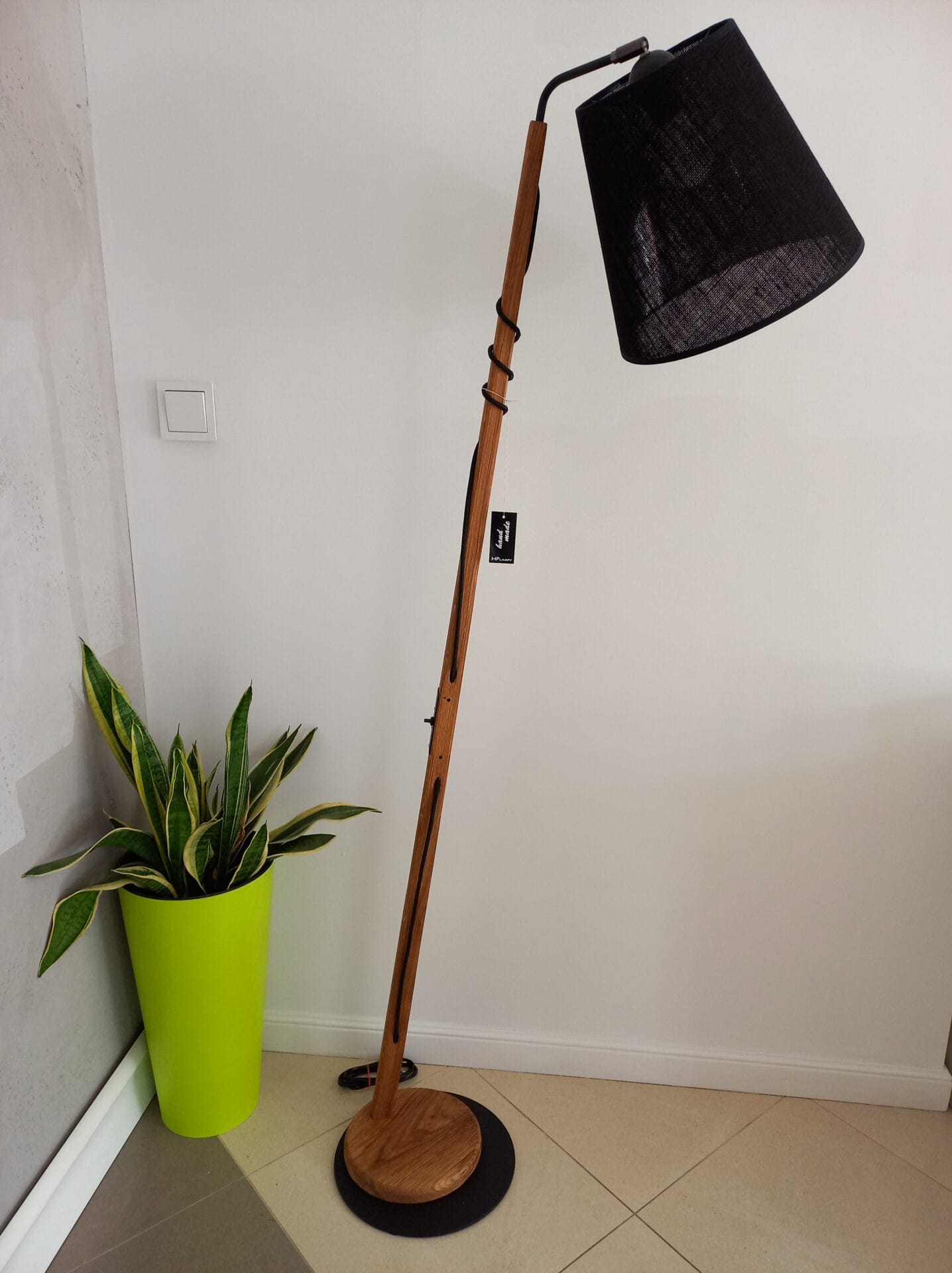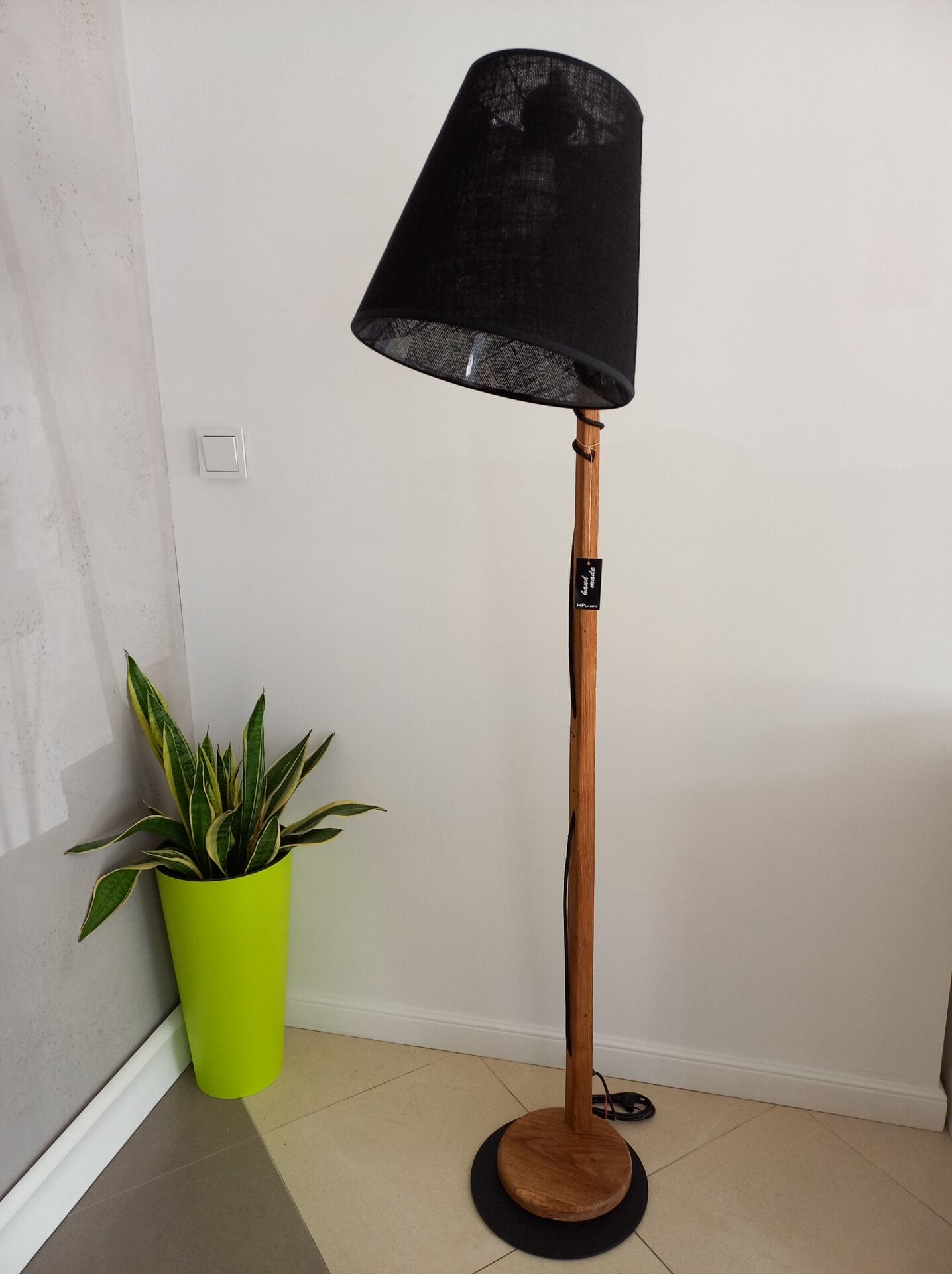 | Materiał | Metal, drewno dębowe, abażur wg wzornika ( na zdjęciu len czarny) |