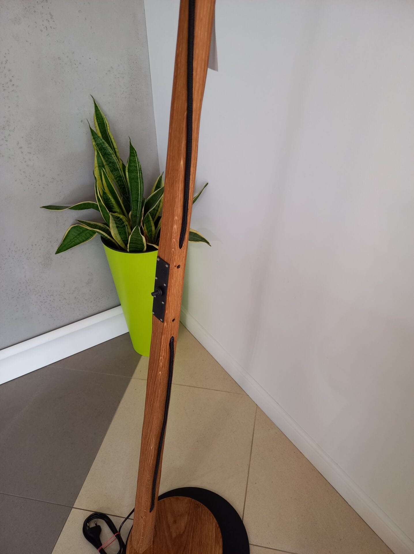 | Cechy dodatkowe | Drewno dębowe postarzane, olejowane, minimalistyczny włącznik, kabel w oplocie |
