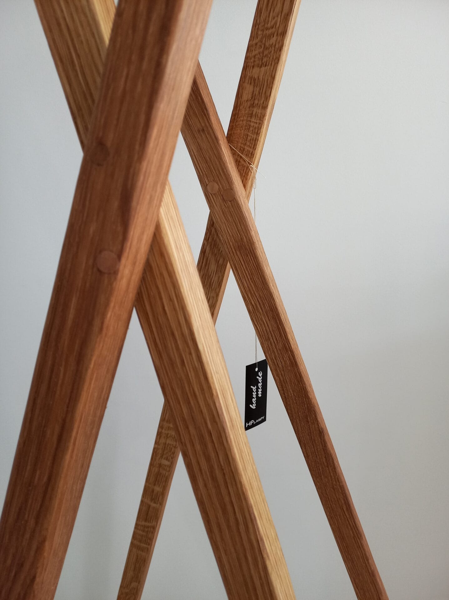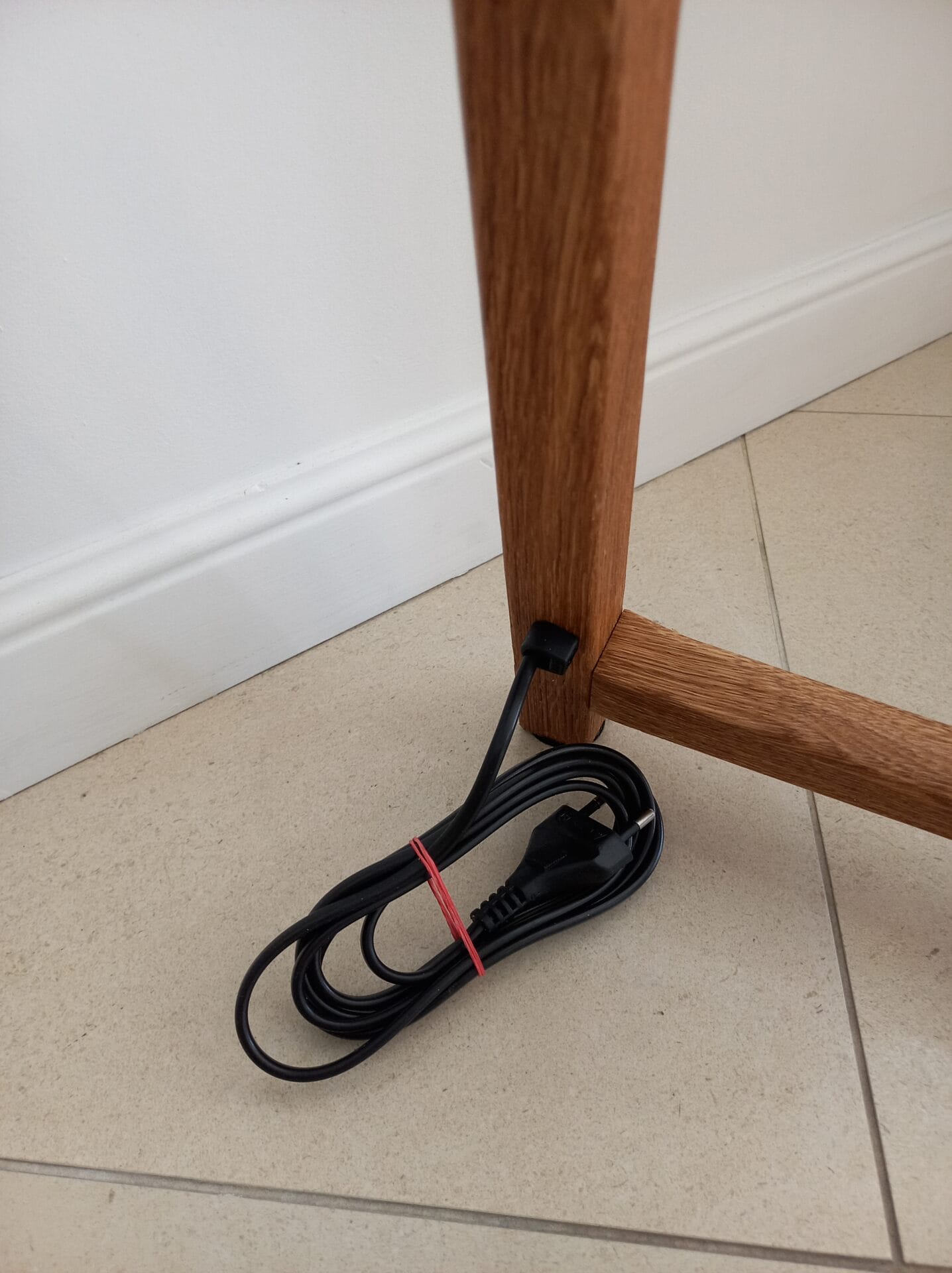 | Cechy dodatkowe | Drewno dębowe postarzane, olejowane, kabel wyprowadzony w dolnej części nogi, można świecić w wariancie 2+1 |